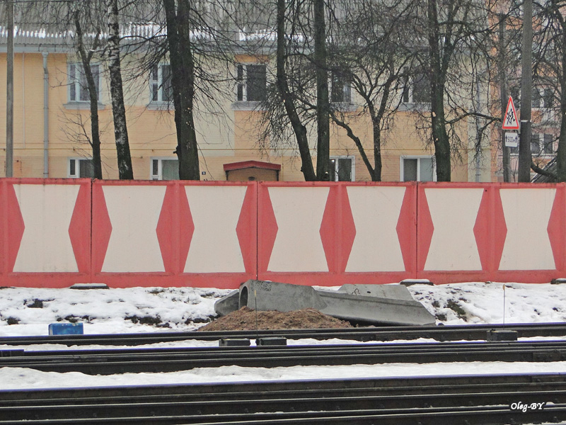 , на месте демонтированных опор уже лежат новые, забиты ли новые стаканы под них не рассмотрел, но видны следы активной деятельности. В горловине ст. Жлобин (направление на Калинковичи) установили КГУ по новому пути, а по старому только 2 опоры для него, но кабеля и остнастка еще не смонтированы окончательно, видимо для пропуска поездов с пассажирской на Хальч, через 6й километр.