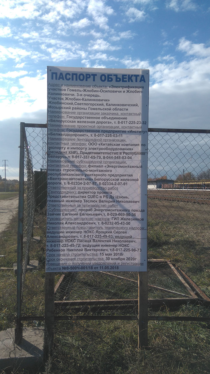 Вчера (02.11.18) на площадке БТА (Жлобин-Подольский) выполнялись работы по разгрузке и сборке поперечин. Установленные опоры уже пронумерованы табличками, также на каждой опоре установлены таблички "Осторожно электрическое напряжение".