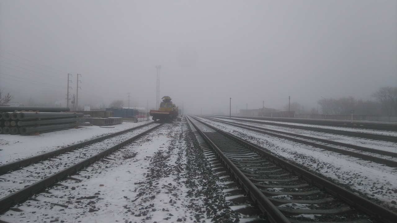 Начались работы по станции Светлогорск, кое где в междупутье лежат стаканы, и бурят землю.