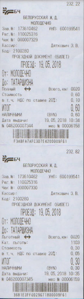 Сказал об этом на Едином дне пассажира, и таки эта функция вернулась, уже на прошло неделе былаVavan писал(а): 11 июн 2018, 12:00 В Молодечно терминал заработал, но теперь там пропала возможность купить льготный пенсионный билет. Вот же где горе-программисты![]()