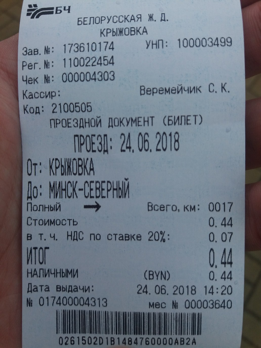 Кстати, вчера в кассе №2 в Молодечно билеты продавали через БПМ. В кассе №4, похоже, тоже, комп был виден, но кассирша им не пользовалась. Наверное, плюнули, ведь через БПМ быстрее выходит