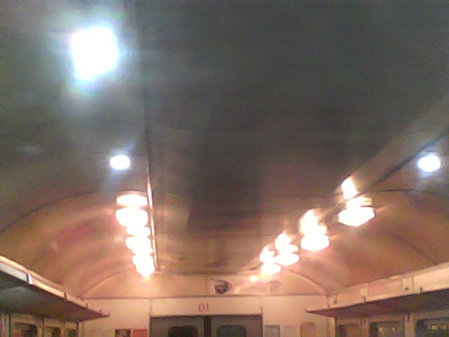 И напоследок - в ЭР9Т-718 новые светильники, покруче тех, что в 700, 712, 694, 604 и остальных. Ехал в 10 вагоне, зафоткал.