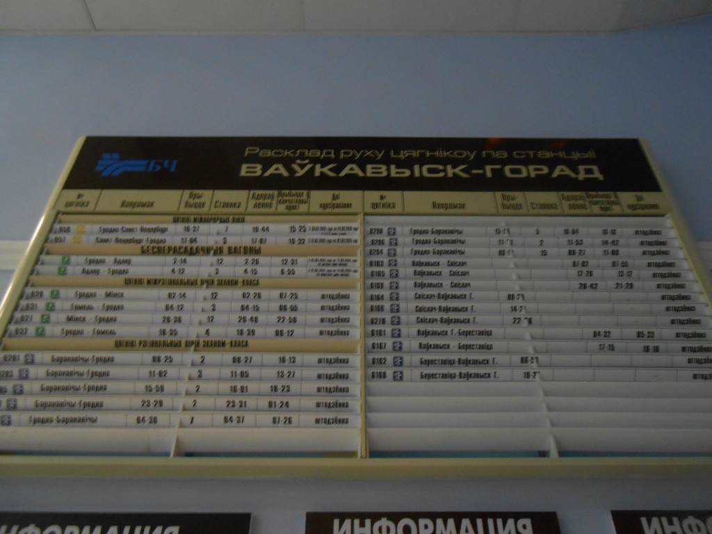 Прошёл почти год. Касса работает по предложенному мной графикуVavan писал(а):Вот уж не думал, что получится. Написал обращение в НОД-6 такого содержания:Vavan писал(а):Што тычыцца паездкі ў Наваполацк, то назад вяртаўся 625-м з Полацка, а ў Полацк ехаў дызелем з Рапнянскай. Дык вось каса там працуе да 21.00, а дызель у 21:14. Вось дзе галовы ў чынушаў?И вот сегодня на мыло пришёл ответ:Хочу внести предложение относительно графика работы кассы на ст. Ропнянская.