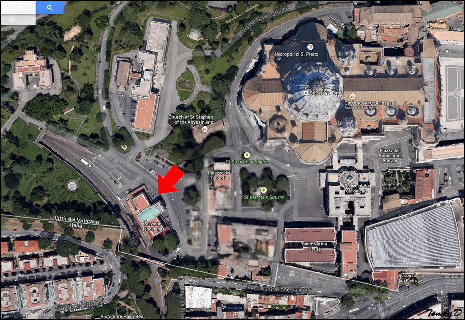 На снимке перед вами видно два пути. Оба имеют длину по 300 метров. Там за забором есть еще два пути по 100 метров. Вот собственно и вся железная дорога этого карликового государства. Из этого же снимка мы можем заметить, что 50% железных дорог Ватикана электрифицированы, а это, согласитесь, довольно хороший показатель!