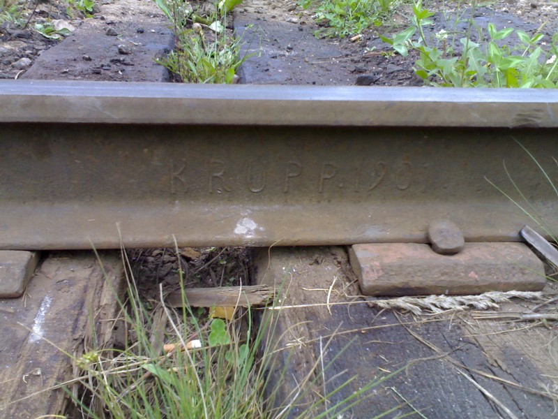 На ветке Калий IV - Любаньский КСМ (начало в Слуцке; была построена в 80-ые) некто Файфер из Любани нашел такую рельсу. "Krupp 1901". Далее на территории завода он посмотрел остальные рельсы. В основном советские 40-50-х годов, но обнаружились и две другие: "1915" (и три латинские буквы, не сказал какие), "1942 THUSSON".