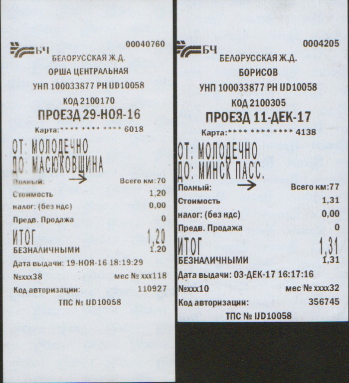 Вот отсканировал билеты с терминала IJD10058, купленные в Орше и Борисове.