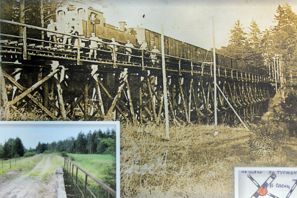 Был в очередной раз в заказнике "Голубые озёра". Там установили стенд, рассказывающий о путях сообщения в разные годы в регионе. Есть забавная вручную нарисованная схема и несколько фотографий линии "Лынтупы-Кобыльник".