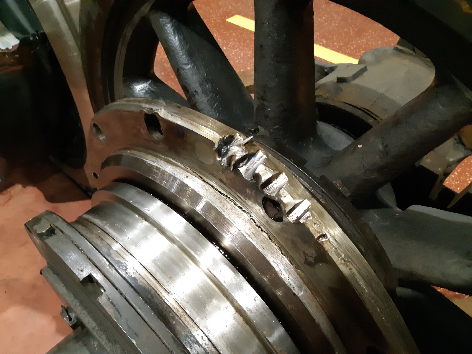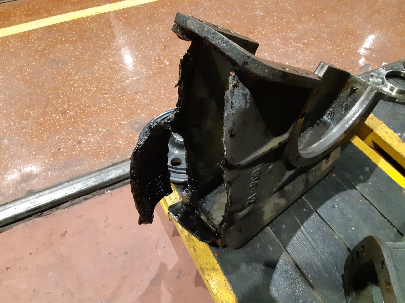 Серьезная поломка. Дырка в редукторе. Зубьями и кусками редуктора пробило два трансформатора, на 4 вагонах снесло тормозные шланги, покоцало оборудование.