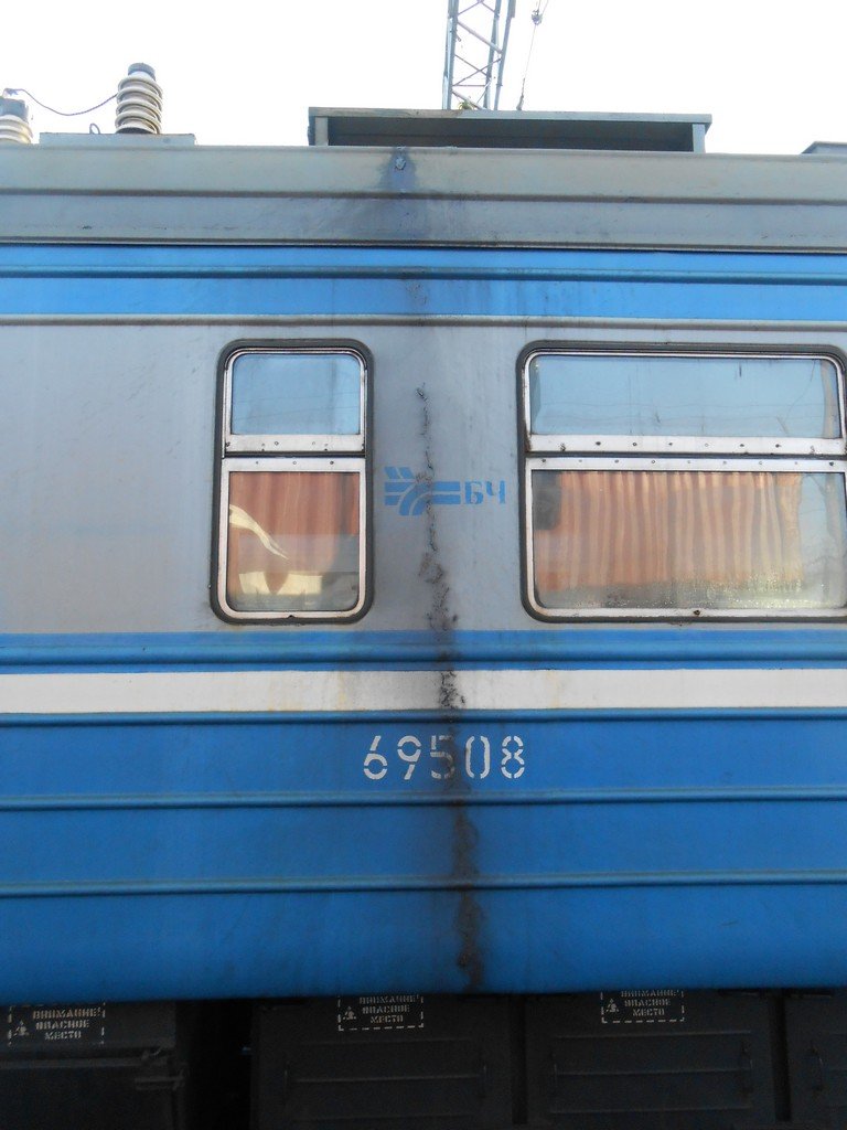 ЭР9Т-695 всё в том же неправильном порядке, но да, главное, что все вагоны при ней. Но заметил на вагоне 08 такой след. Это что, когда обледенение проводов было, такая искра была, дуга? Что так подсмолило.