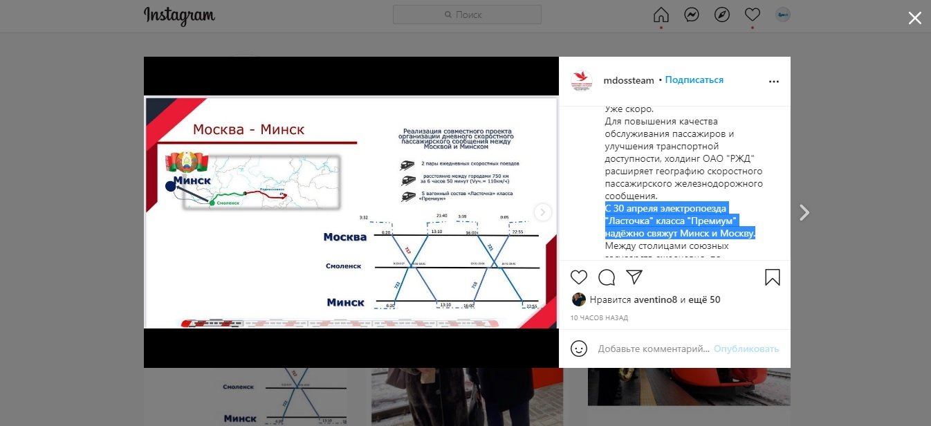 с 30.04 две пары Ласт Москва - Минск. В перспективе хотят увеличить до четырех пар.