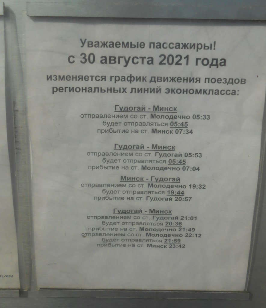 PS Ещё глядя на новое расписание, заметил, что изменённое время 6106 после увеличенной стоянки в Молодечно совпадает с графиком отменённой ещё ранее 6108, которая по будням ходила. Ничего нового :)