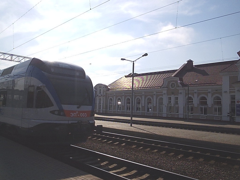 Спасибо Евгению за инфу! ЭПр-003 прибыла в 9.39 на 4-й путь и отправилась на Минск после прибытия электрички в 10.22. Уникальные фотки получены, правда, не ахти какие, но зато видно, что в Молодечно.