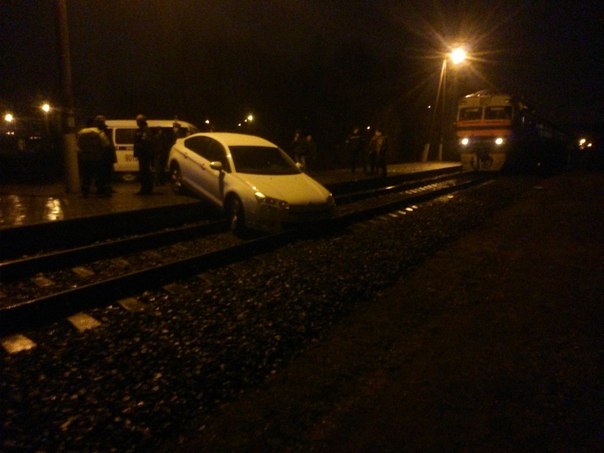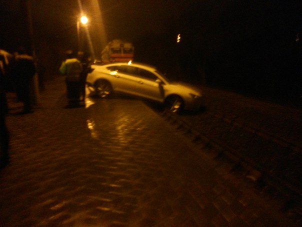 На о.п. Юго-запад, граница станции Брест-Южный, пьяный водитель вылетел на платформу едва не сбив людей, ждущих поезд.