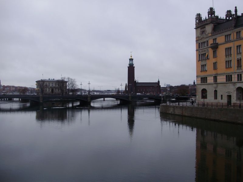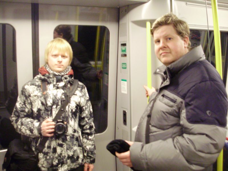 Женя, Макс Ш., Артём сделали множество фото. Погуляли по центру Стокгольма, осмотрели старый город, побывали на церемонии смены караула у здания парламента. Сходили на центральный вокзал, прокатились от морвокзала до центра на метро (ценник бешенный, одна поездка стоит 18 шведских крон = 2,79 латвийских лата = 5,60 американских долларов). При выходе из метро буквально упёрлись в набережную и приземлившийся прямо перед нами вертолёт, который вскоре и улетел. Параллельно путям метро проходят и железнодорожные пути с невероятно непонятной сигнализацией. На светофоре горит 3 зелёных, потом один гаснет и продолжают гореть два зелёных, потом гаснет ещё один и горит зелёный с белым мигающим, после чего проходит поезд и светофор перекрывается на красный.