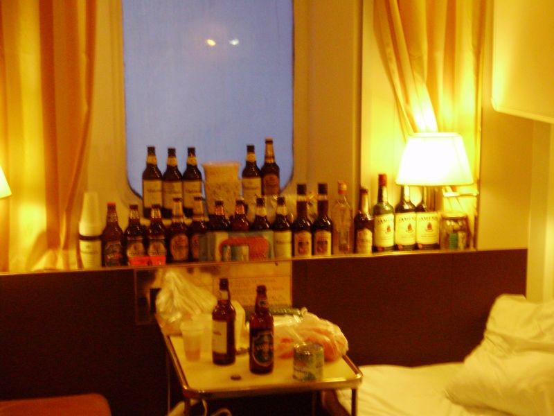Вобщем отправились. Заплатили за постель, которая кстати у нас была включена во вторых билетах от Бигосово до Риги и которую проводница логично отказалась нам выдать раньше, чем по Бигосово. Сходили в гости в соседний ваген к Шурику, где раскатили бутылочку вискаря и пару батлов пива.
