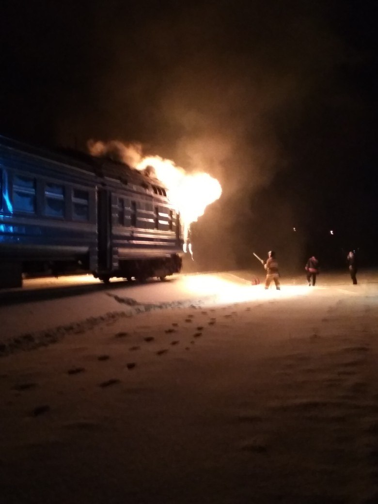 Под Дрогичином горит дизель-поезд.