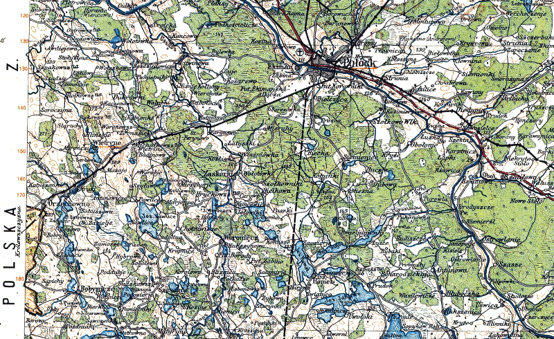 Это действительно загадка, так как через Гайну не так то много мостов. А пересекать Гайну дорога должна была. Берега в низовьях заболочены, и остатки насыпи должны были остаться. Там есть пару подозрительных мест (я был там). Но по мнению польской карты 30х годов, тогда тех мостов еще не было.