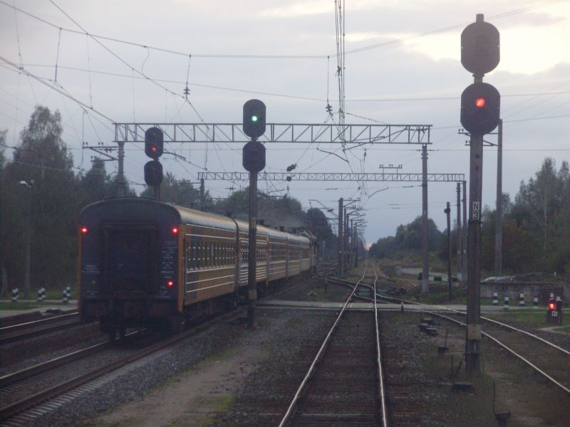 Вчера в 19.00 по ст. Лиелварде пронёсся этот турист мимо меня на Ригу. В составе 2 купейника, 1 плацкарт и 2 ресторана.