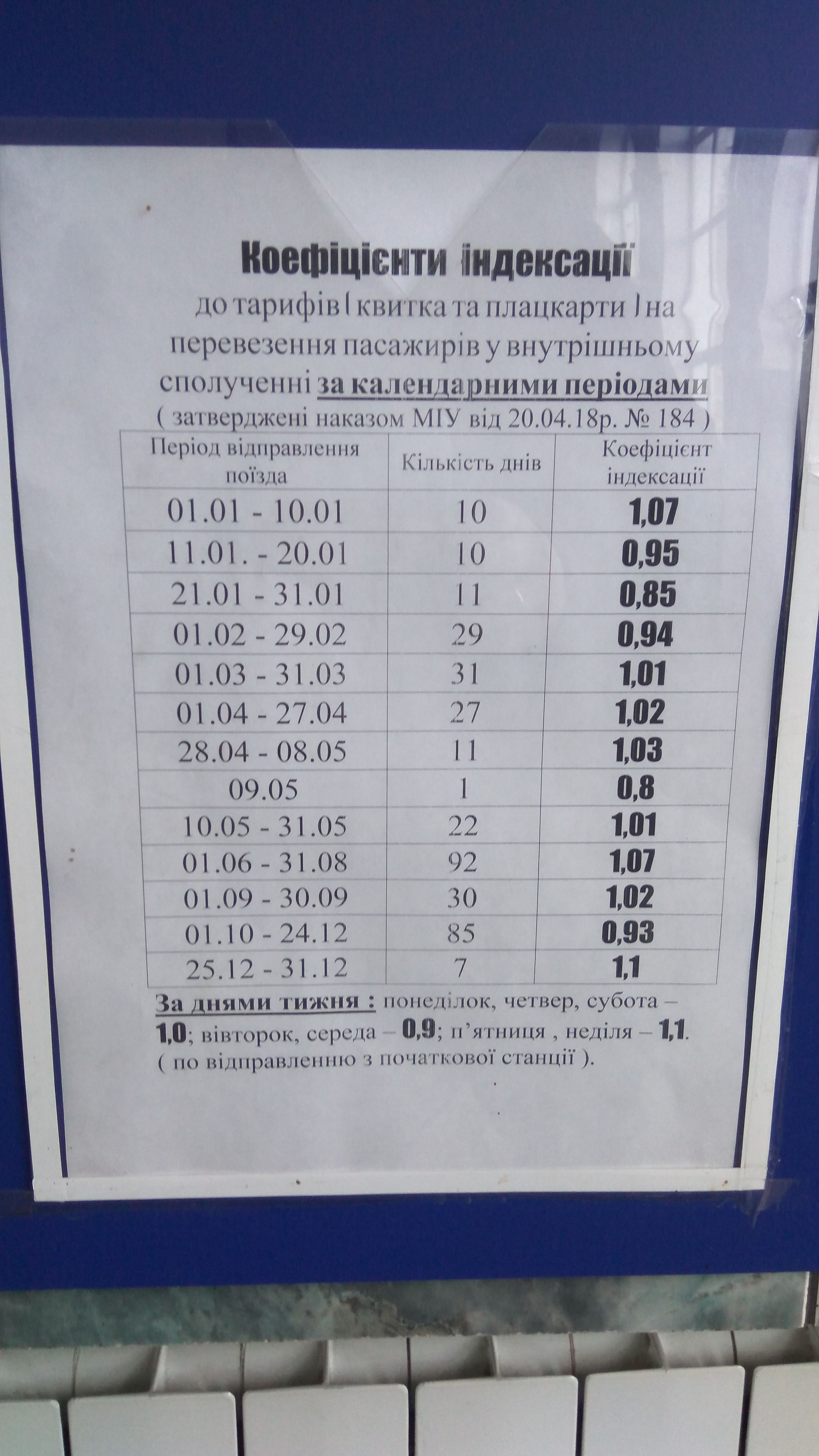 Коэффициенты индексации тарифов на перевозки пассажиров во внутреннем сообщении по календарным периодам на УЗ.