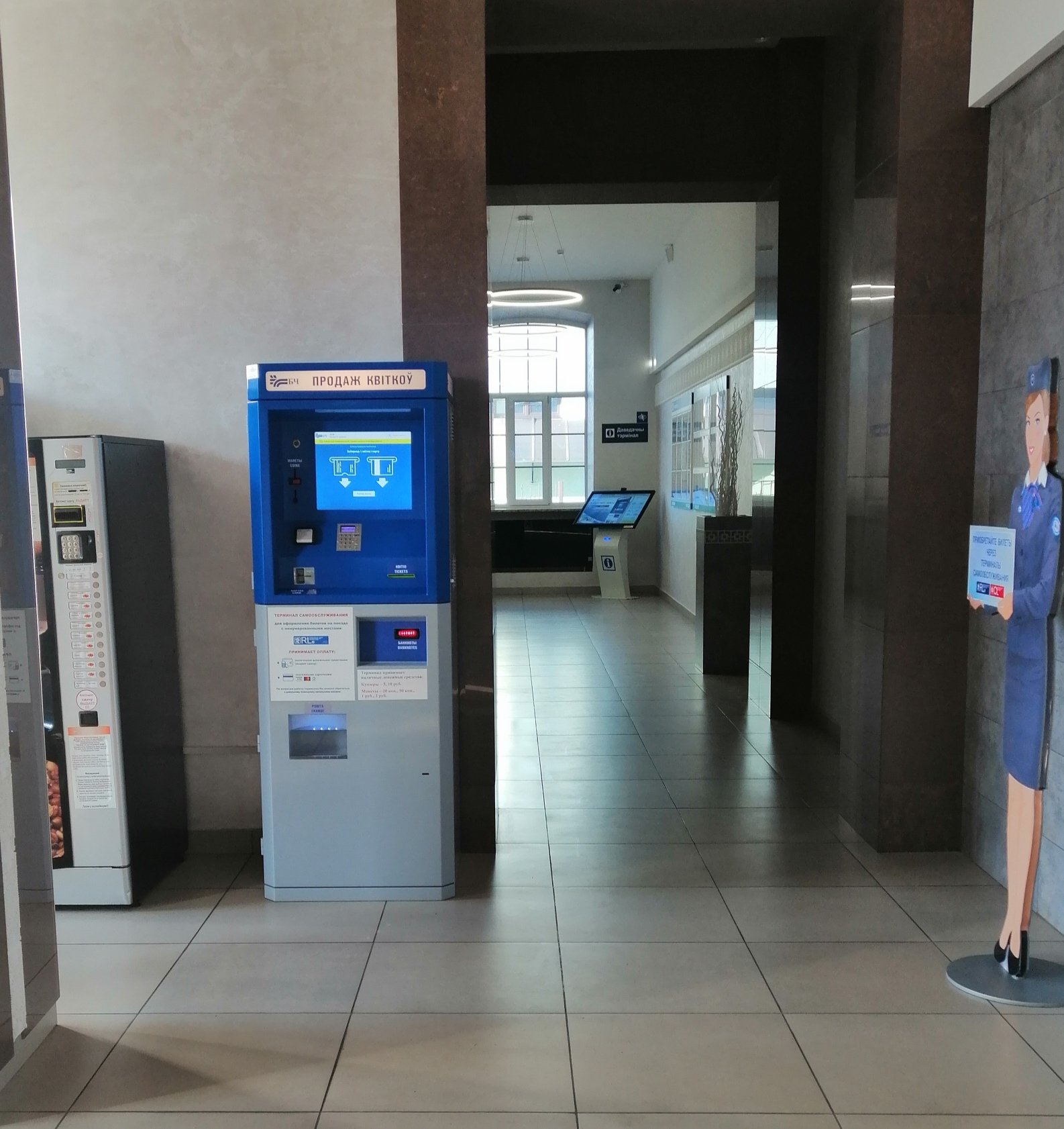 Внутри здания билетных касс. Самый правый, к сожалению, не работал