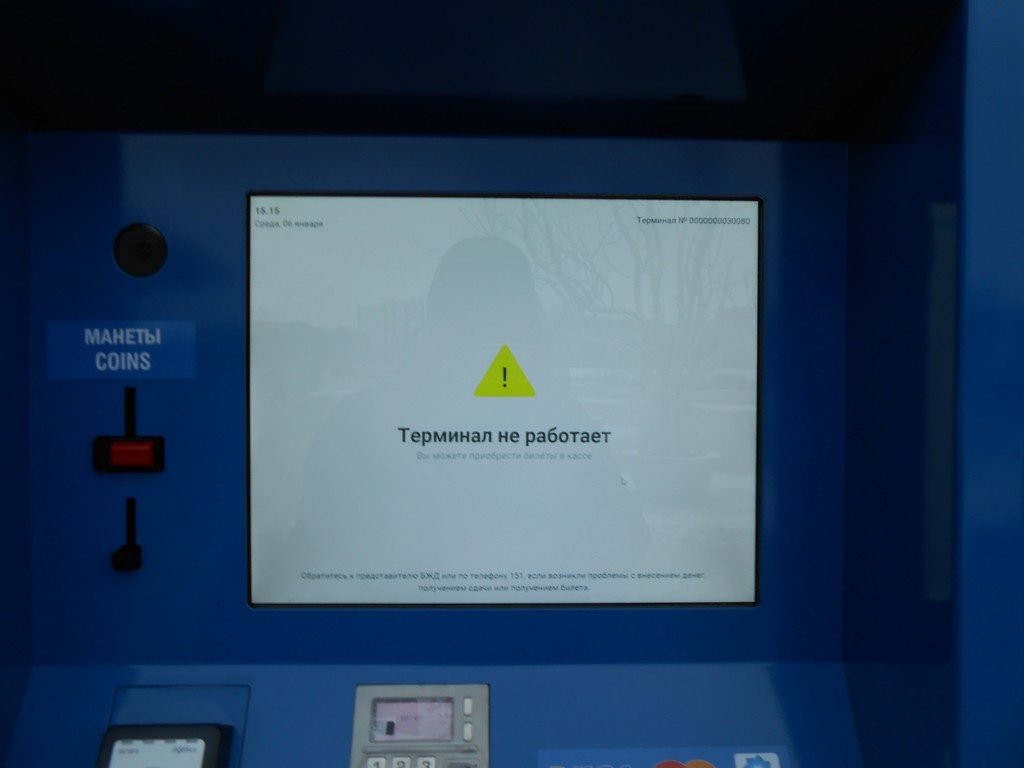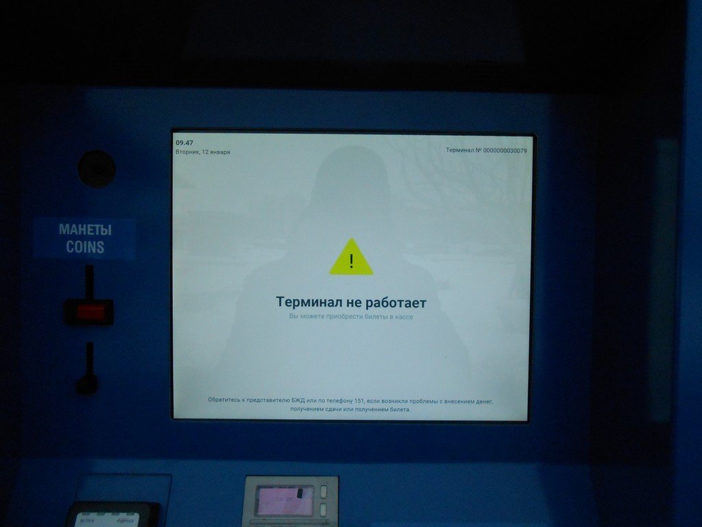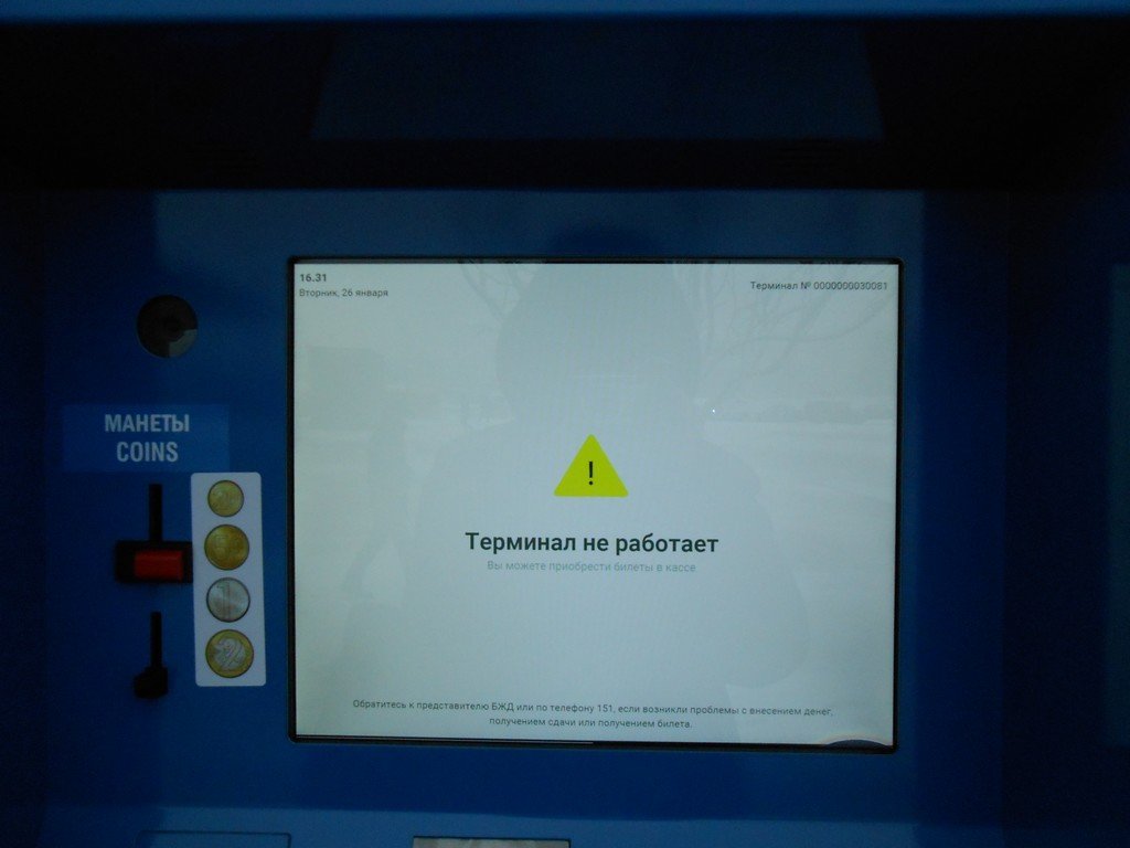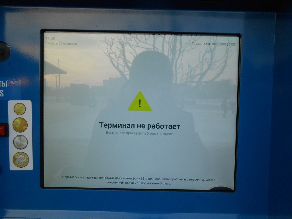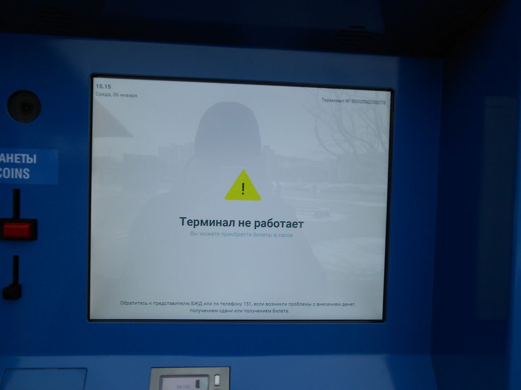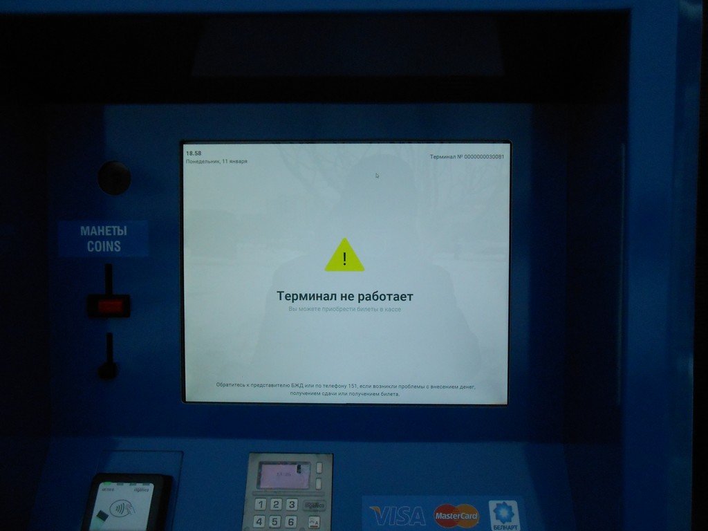 Ещё из жизни терминалов. Во вторник увидел в Ждановичах, что один из двух старых, №61, не работал. В пятницу оказалось то же самое. Было время, подошёл сказать в кассу. Думаю, мало ли, не знают, по переходу не ходят. Сказал, там ответили "Так да, уже давно выключен. А, Вы хотели на сообщить? Да, спасибо, мы знаем". Дальше я выяснять не стал, почему знают, и ничего не делают.
