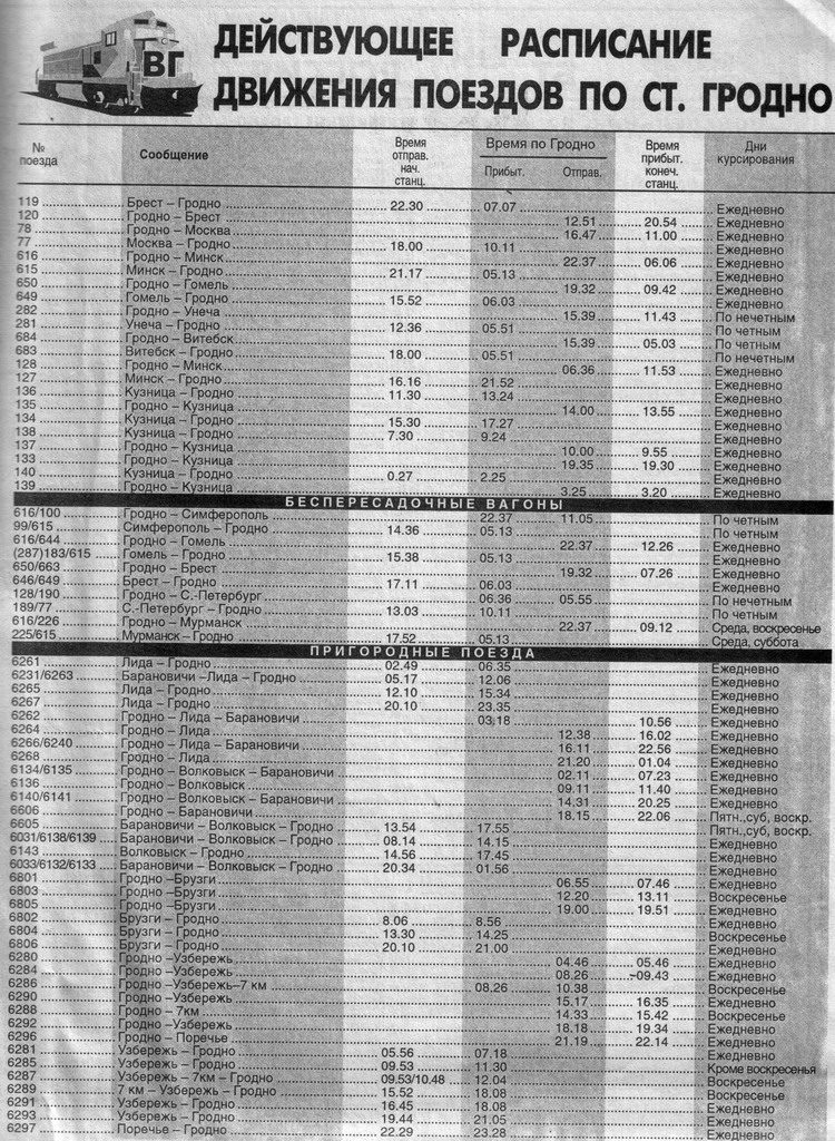 За 1 рупь продается Служебное расписание пригородных поездов Могилевского отделения 1984 года. Доставка дороже, - полтора. Может кто-то купит и отсканирует данное произведение?