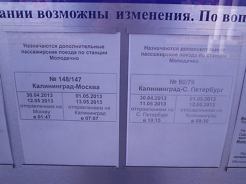 Евгений М писал(а):В связи с работами по строительству второго пути на участке Скривери - Крустпилс с 14 мая 10:00 до 16 мая 17:30