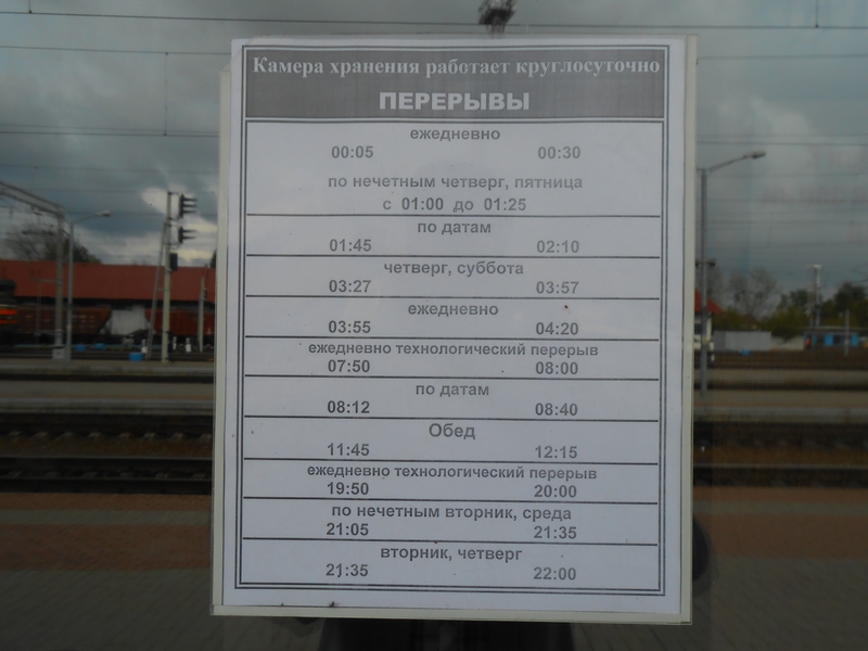 Расписание работы камер хранения в Молодечно - на фото. Если честно, офигеваю от перерывов. Они хоть сами помнят, во сколько им перерыв устраивать, или выходят на улицу почитать?